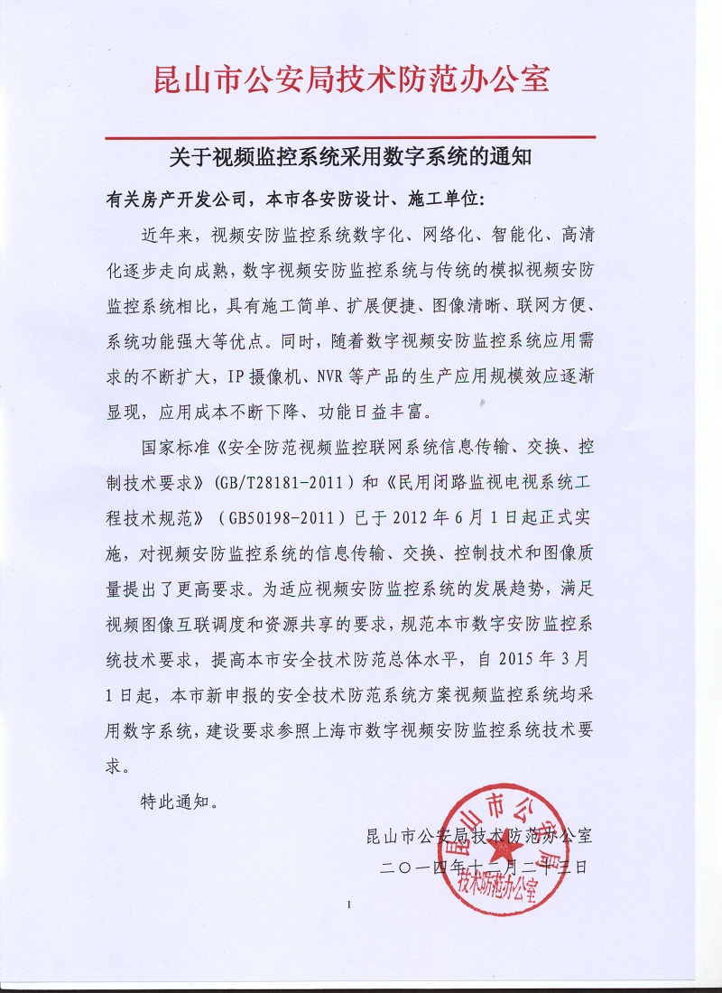 上海市关于《数字视频安防监控系统基本技术要求》的补充说明(一)