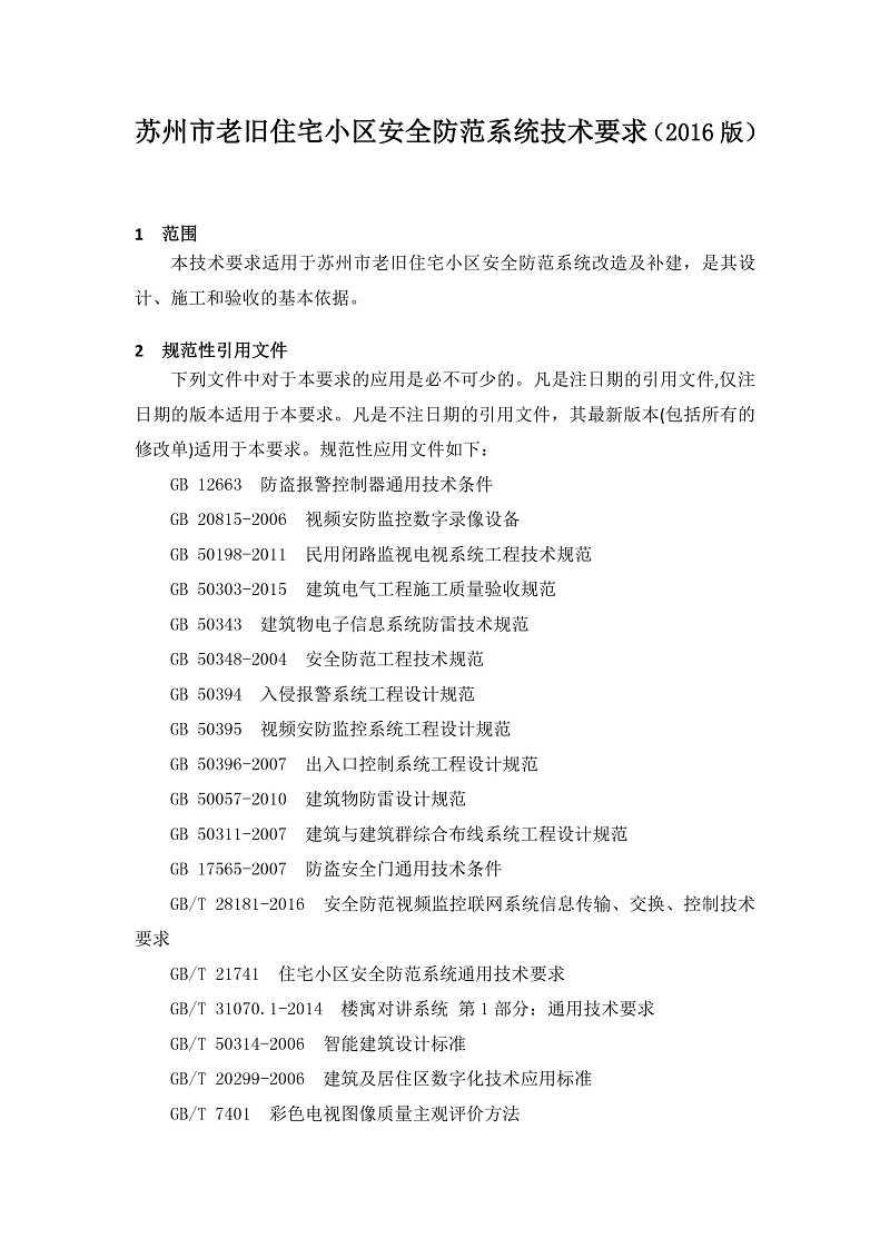 苏州市老旧住宅小区安全防范系统技术要求(2016版)