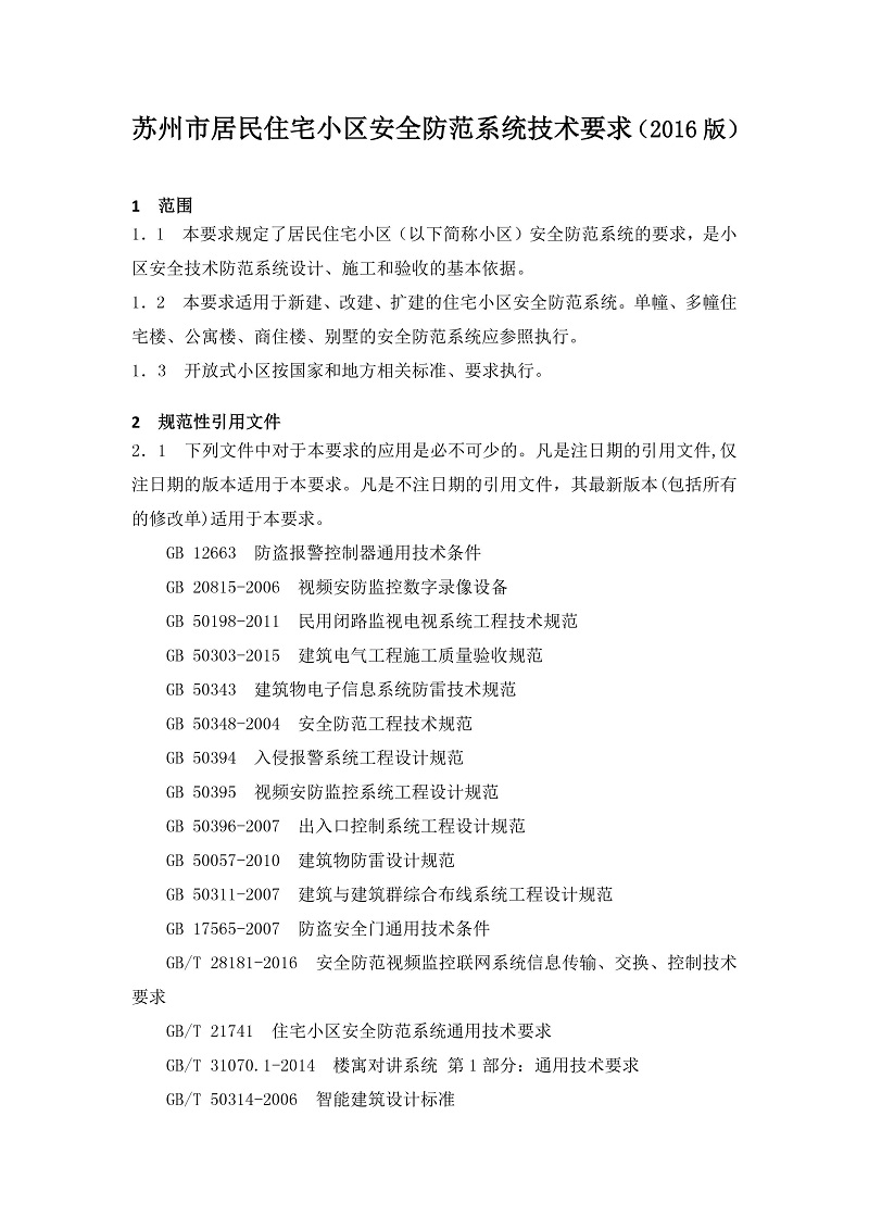 苏州市居民住宅小区安全防范系统技术要求(2016版)