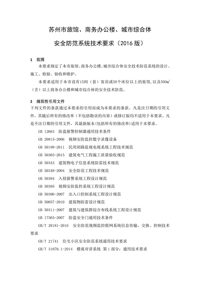 苏州市旅馆、商务办公楼、城市综合体安全防范系统技术要求(2016版)