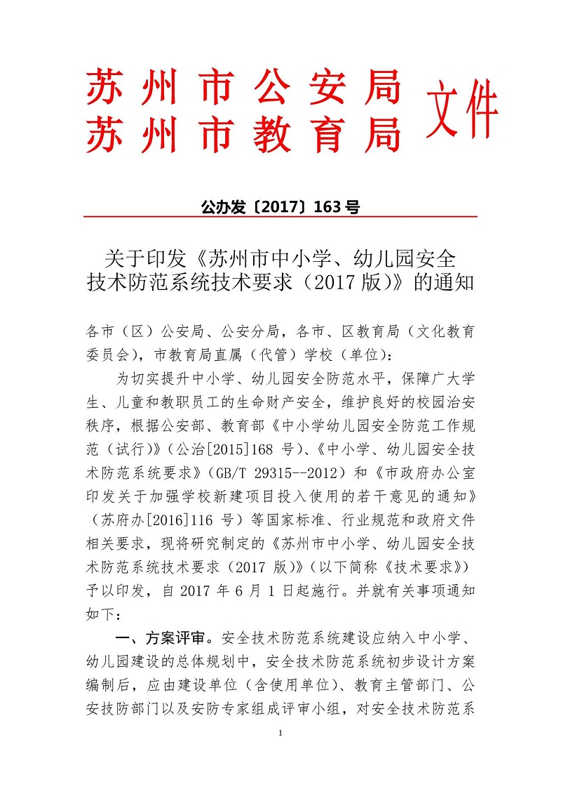 苏州市中小学幼儿园安全防范系统技术要求(2016版)